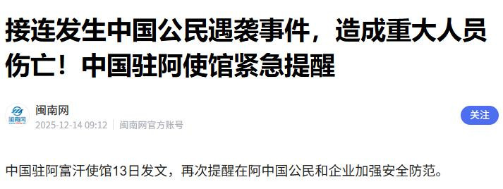 闽南网 接连发生中国公民遇袭事件配资炒股在线,造成重大人员伤亡!中国驻阿使馆紧急提醒